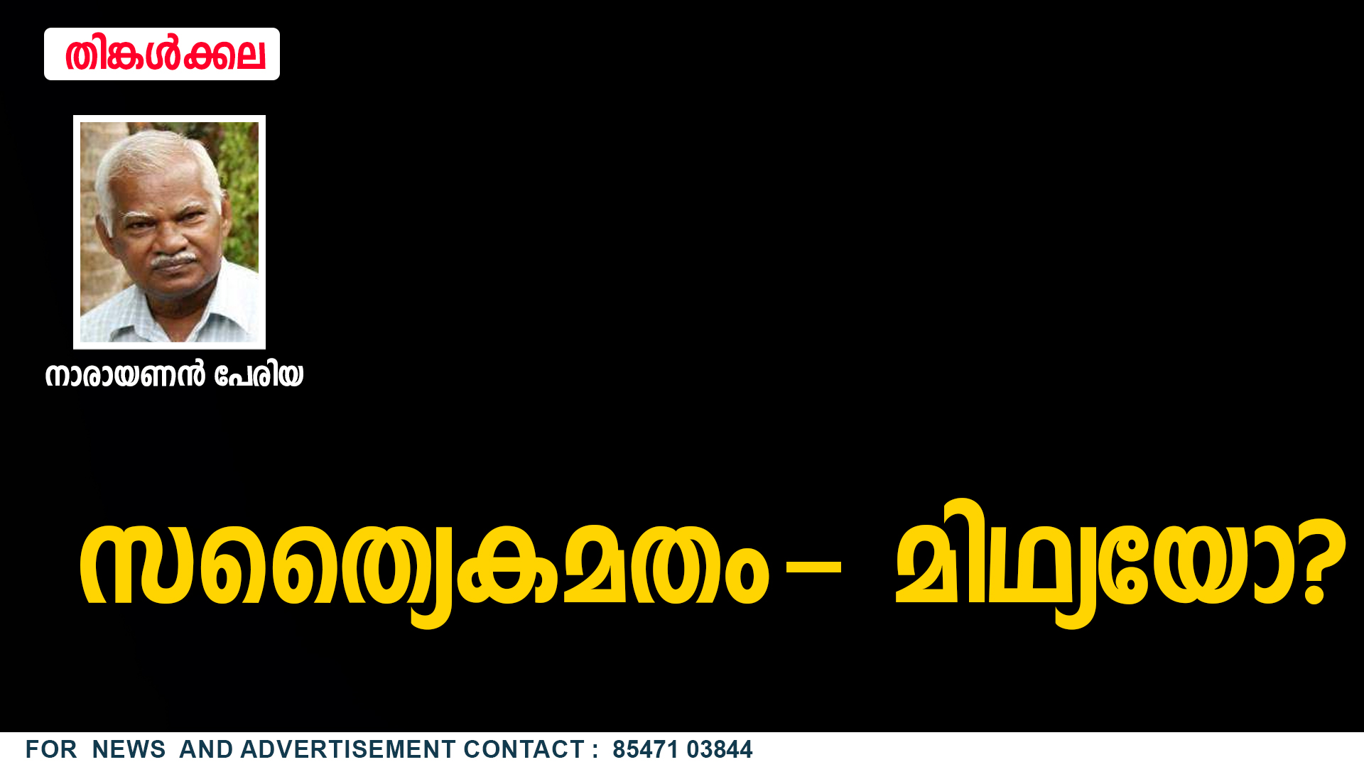 നാരായണന് പേരിയ ”മനുഷ്യന് മതങ്ങളോ സൃഷ്ടിച്ചുമതങ്ങള് ദൈവങ്ങളെ സൃഷ്ടിച്ചുമനുഷ്യനും മതങ്ങളും കൂടിമനസ്സ് പങ്കുവെച്ചുമണ്ണ് പങ്കുവെച്ചു…”വയലാര് രാമവര്മ്മയുടെ ചിന്തോദ്ദീപികമായഗാനം. പങ്കുവെയ്ക്കല് തര്ക്ക വിതര്ക്കങ്ങള്ക്കിടയാക്കാതിരിക്കില്ല. പങ്കുകളുടെ വലിപ്പച്ചെറുപ്പങ്ങളെച്ചൊല്ലി തര്ക്കം. താനാണ് ശരി; വലിയവന്. തനിക്ക് കിട്ടണം വലിയ