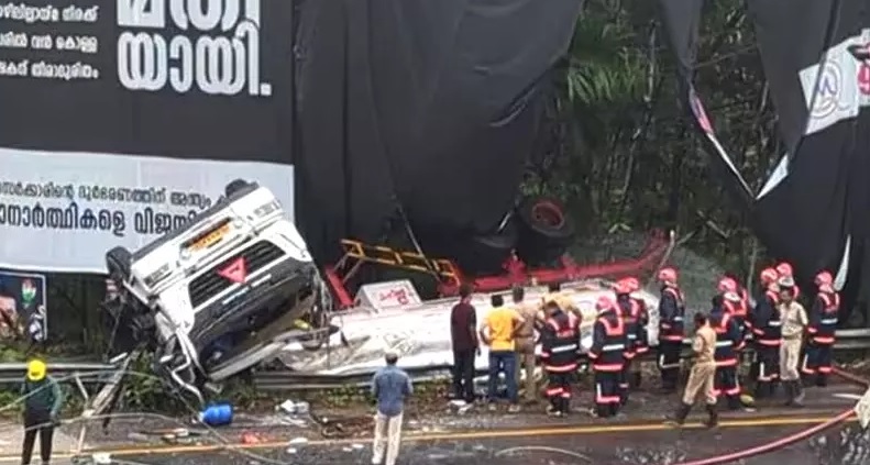 കൊല്ലം: കൊട്ടാരക്കരയ്ക്കടുത്തു പനവേലി എം സി റോഡില് ഇന്നു പുലര്ച്ചെ ടാങ്കര് ലോറി മറിഞ്ഞു.