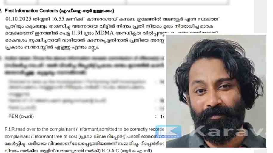 കാസര്കോട്: 11.91 ഗ്രാം എം ഡി എം എയുമായി യുവാവ് അറസ്റ്റില്. അണങ്കൂര്, മെഹബൂബ് റോഡിലെ എ എ മുഹമ്മദ് റിയാസി(36)നെയാണ് കാസര്കോട് ടൗണ് എസ് ഐ എന് അന്സാറും സംഘവും അറസ്റ്റു ചെയ്തത്.