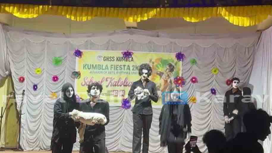 കലോത്സവത്തില് മൂകാഭിനയ മത്സരത്തില് പങ്കെടുത്ത ഒരു വിദ്യാര്ത്ഥി പാലസ്തീന് അനുകൂല ദൃശ്യങ്ങള് പ്രകടിപ്പിച്ചു കൊണ്ടു നില്ക്കുന്നതിനിടയില് ഫ്രീ പാലസ്തീന് എന്നെഴുതിയ ബാനര് എടുത്തുയര്ത്തുകയായിരുന്നുവത്രെ. അധ്യാപകന് ഉടന് കര്ട്ടന് ഇടാന് നിര്ദ്ദേശിച്ചു.