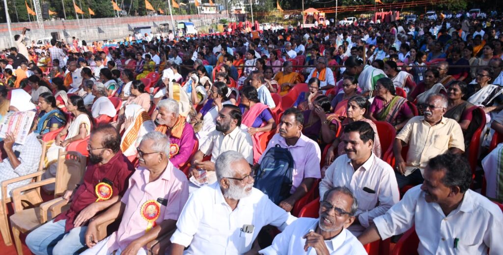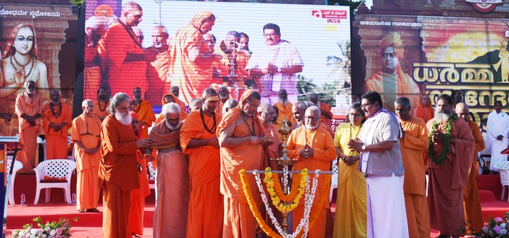 കാസർകോട്: സമൂഹത്തെ ഗ്രസിച്ചു കൊണ്ടിരിക്കുന്ന മൂല്യച്യുതികൾക്കും അധാർമ്മികതകൾക്കുമെതിരെ അറുപതോളം സ്വാമിമാരുടെ നേതൃത്വത്തിൽ ധർമ്മ സന്ദേശയാത്ര ആരംഭിച്ചു. കേരള മാർഗനിർദ്ദേശകമണ്ഡലത്തിൻ്റെ ആഭിമുഖ്യത്തിലാരംഭിച്ച യാത്ര 21 നു തിരുവനന്തപുരത്തു എത്തിച്ചേരും. താളിപ്പടപ്പു മൈതാനിയിൽ നടന്ന ധർമ്മ സന്ദേശയാത്ര ഉദ്ഘാടനം മാർഗദർശക മണ്ഡലം പ്രസിഡൻ്റ് സ്വാമി ചിദാനന്ദപുരി വൻ ജനാവലിയുടെ സാന്നിധ്യത്തിൽ നിർവഹിച്ചു. സ്വാമി വിവിക്താനന്ദ സരസ്വതി ആധ്യക്ഷ്യം വഹിച്ചു. മണ്ഡൽ സെക്രട്ടറി സ്വാമി സദ്സ്വരൂപാനന്ദ ,സ്വാമി അയ്യപ്പദാസ് തുടങ്ങി 40 ൽപരം സ്വാമിമാർ യോഗത്തിൽ പങ്കെടുത്തു. സ്വാമിമാരുടെ നേതൃത്വത്തിൽ കറന്തക്കാട്ടു നിന്നു താളിപ്പടപ്പു വരെ ഘോഷയാത്രയുമുണ്ടായിരുന്നു. നഗരത്തെ കാവി അണിയിച്ചു നടന്ന ധർമ്മ സന്ദേശയാത്ര വീക്ഷിക്കാനും യാത്രയെ ആശീർ വദിക്കാനും വൻ ജനാവലി എത്തിയിരുന്നു. സമൂഹത്തിൻ്റെ സകല മേഖലകളിലും വികലവും സർവനാശകവുമായപുതിയ സാമൂഹികക്രമം ആധിപത്യം അടിച്ചേൽപ്പിച്ചിരിക്കുകയാണെന്നു ഉദ്ഘാടനച്ചടങ്ങ് വിശദീകരിച്ചു. സാമൂഹ്യമൂല്യങ്ങളെള അതുതലകീഴ് മറിച്ചു. പ്രതീക്ഷകളുടെ പരമ്പരാഗത ശക്തിക്കും സ്വാധീനത്തിനും പകരമായി സ്വയം നശീകരണമാണു നവീന സിദ്ധാന്തങ്ങൾ സമൂഹത്തിൽ നടപ്പാക്കിക്കൊണ്ടിരിക്കുന്നതെന്നു സ്വാമിമാർ അനുസ്മരിച്ചു. ധാർമ്മികതയിലും സംസ്കാരത്തിലും അടിയുറച്ച സമൂഹത്തെ പുനസൃഷ്ടിക്കാനുള സംരംഭത്തിനു മനുഷ്യസ്നേഹികളുടെ ഐക്യദാർഢ്യം അവർ അഭ്യർത്ഥിച്ചു.
