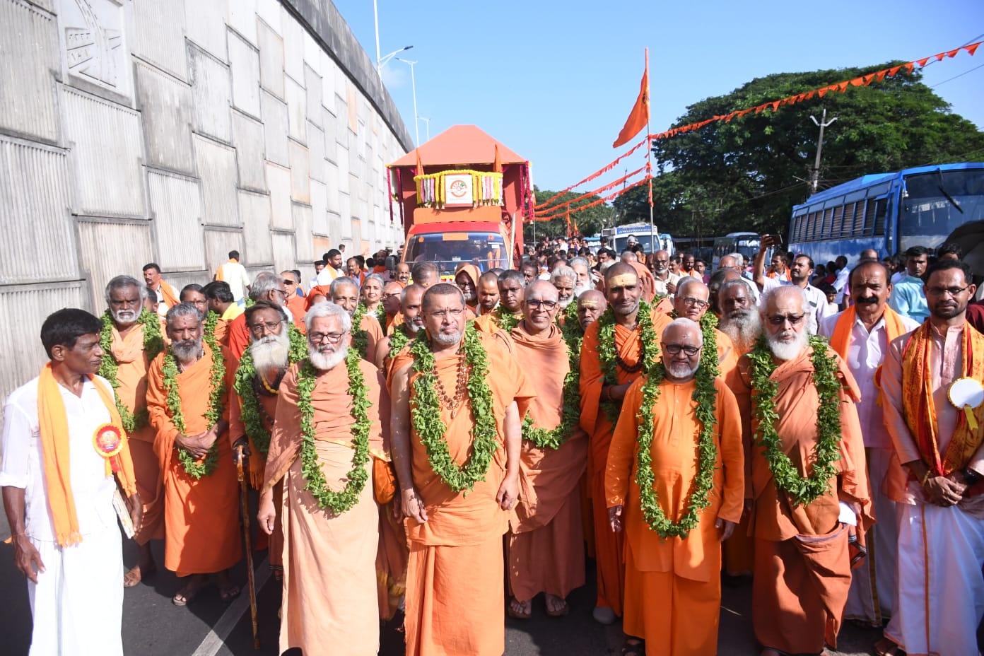 കാസർകോട്: സമൂഹത്തെ ഗ്രസിച്ചു കൊണ്ടിരിക്കുന്ന മൂല്യച്യുതികൾക്കും അധാർമ്മികതകൾക്കുമെതിരെ അറുപതോളം സ്വാമിമാരുടെ നേതൃത്വത്തിൽ ധർമ്മ സന്ദേശയാത്ര ആരംഭിച്ചു. കേരള മാർഗനിർദ്ദേശകമണ്ഡലത്തിൻ്റെ ആഭിമുഖ്യത്തിലാരംഭിച്ച യാത്ര 21 നു തിരുവനന്തപുരത്തു എത്തിച്ചേരും. താളിപ്പടപ്പു മൈതാനിയിൽ നടന്ന ധർമ്മ സന്ദേശയാത്ര ഉദ്ഘാടനം മാർഗദർശക മണ്ഡലം പ്രസിഡൻ്റ് സ്വാമി ചിദാനന്ദപുരി വൻ ജനാവലിയുടെ സാന്നിധ്യത്തിൽ നിർവഹിച്ചു. സ്വാമി വിവിക്താനന്ദ സരസ്വതി ആധ്യക്ഷ്യം വഹിച്ചു. മണ്ഡൽ സെക്രട്ടറി സ്വാമി സദ്സ്വരൂപാനന്ദ ,സ്വാമി അയ്യപ്പദാസ് തുടങ്ങി 40 ൽപരം സ്വാമിമാർ യോഗത്തിൽ പങ്കെടുത്തു. സ്വാമിമാരുടെ നേതൃത്വത്തിൽ കറന്തക്കാട്ടു നിന്നു താളിപ്പടപ്പു വരെ ഘോഷയാത്രയുമുണ്ടായിരുന്നു. നഗരത്തെ കാവി അണിയിച്ചു നടന്ന ധർമ്മ സന്ദേശയാത്ര വീക്ഷിക്കാനും യാത്രയെ ആശീർ വദിക്കാനും വൻ ജനാവലി എത്തിയിരുന്നു. സമൂഹത്തിൻ്റെ സകല മേഖലകളിലും വികലവും സർവനാശകവുമായപുതിയ സാമൂഹികക്രമം ആധിപത്യം അടിച്ചേൽപ്പിച്ചിരിക്കുകയാണെന്നു ഉദ്ഘാടനച്ചടങ്ങ് വിശദീകരിച്ചു. സാമൂഹ്യമൂല്യങ്ങളെള അതുതലകീഴ് മറിച്ചു. പ്രതീക്ഷകളുടെ പരമ്പരാഗത ശക്തിക്കും സ്വാധീനത്തിനും പകരമായി സ്വയം നശീകരണമാണു നവീന സിദ്ധാന്തങ്ങൾ സമൂഹത്തിൽ നടപ്പാക്കിക്കൊണ്ടിരിക്കുന്നതെന്നു സ്വാമിമാർ അനുസ്മരിച്ചു. ധാർമ്മികതയിലും സംസ്കാരത്തിലും അടിയുറച്ച സമൂഹത്തെ പുനസൃഷ്ടിക്കാനുള സംരംഭത്തിനു മനുഷ്യസ്നേഹികളുടെ ഐക്യദാർഢ്യം അവർ അഭ്യർത്ഥിച്ചു.