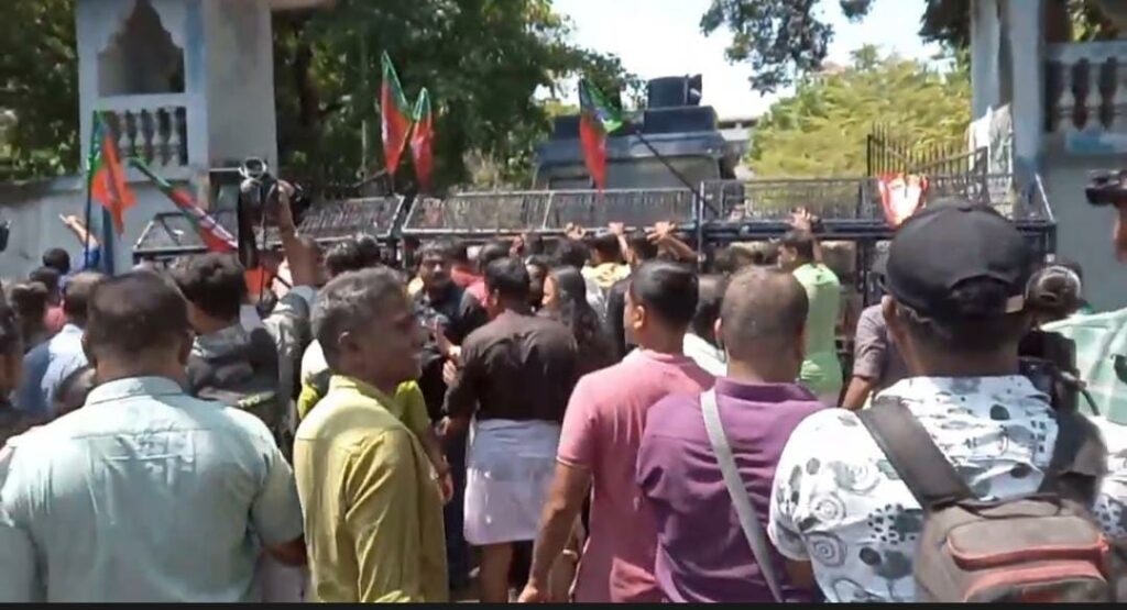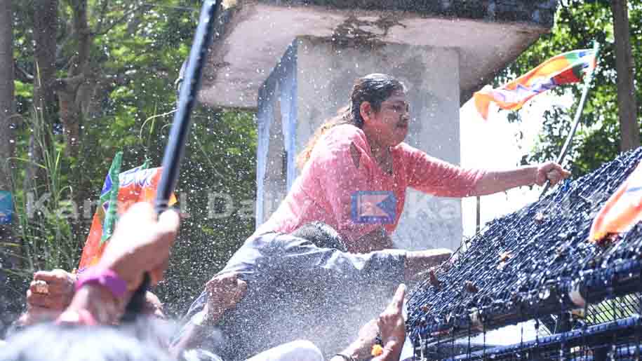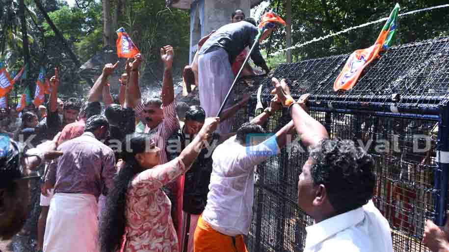 കാസര്കോട്: ശബരിമലയിലെ സ്വര്ണകൊള്ളയില് സിബിഐ അന്വേഷണം ആവശ്യപ്പെട്ട് ബിജെപിയുടെ നേതൃത്വത്തില് കാസര്കോട് കളക്ടറേറ്റിലേക്ക് നടത്തിയ മാര്ച്ചില് സംഘര്ഷം. പൊലീസ് ജലപീരങ്കി പ്രയോഗിച്ചു. ജില്ലാ പ്രസിഡന്റ് എംഎല് അശ്വനിയുടെ നേതൃത്വത്തിലാണ് പ്രവര്ത്തകര് കളക്ടറേറ്റിലേക്ക് മാര്ച്ച് നടത്തിയത്. മാര്ച്ചിനെ പൊലീസ് ബാരിക്കേഡ് വച്ച് തടഞ്ഞു. ഇതോടെ ചില പ്രവര്ത്തകര് ബാരിക്കേഡ് ചാടിക്കടക്കാന് ശ്രമിച്ചു. സംഘര്ഷാവസ്ഥയിലെത്തിയതോടെ പൊലീസ് ജലപീരങ്കി പ്രയോഗിച്ചു. ദേശീയ വൈസ് പ്രസിഡന്റ് എപി അബ്ദുല്ലകുട്ടിയാണ് മാര്ച്ച് ഉദ്ഘാടനം ചെയ്തത്. കോഴിക്കോട് കളക്ടറേറ്റിലേക്ക് നടന്ന മാര്ച്ചിലും പൊലീസ് ജലപീരങ്കി പ്രയോഗിച്ചു.