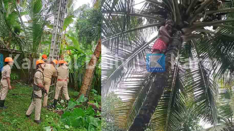 ഉദുമ : മീത്തലെ മാങ്ങാട്,കൂളിക്കുന്നിൽ തേങ്ങയിടുന്നതിനു തെങ്ങു കയറ്റ യന്ത്രമുപയോഗിച്ച് തെങ്ങിന് മുകളിൽ കയറിയ ആൾ യന്ത്രം ലോക്ക് ആയതിനെതുടർന്നു അര മണിക്കൂറോളം തെങ്ങിൽ പിടിച്ചു നിന്നു. വിവരം അറിഞ്ഞെത്തിയ ഫയർ ഫോഴ്സ് ആളെ രക്ഷിച്ചു താഴെയിറക്കിയത്തോടെയാണ്കണ്ടുനിന്നവർക്കും ആശ്വാസമാ യത്.കൂളിക്കുന്നിലെ ഫൗസിയ ഉസ്മാന്റെ വീട്ടു പറമ്പിൽ തേങ്ങ പറിക്കാൻ എത്തിയ കുളിക്കുന്നിലെ രാജു എ ജെ (60) എന്ന ആളാണ് തെങ്ങിനു മുകളിൽവച്ചു യന്ത്രം ലോക് ആയതോടെ താഴെ ഇറങ്ങാൻ കഴിയാതെ തെങ്ങിൽ കുടുങ്ങിയത്. തേങ്ങാ പറിച്ചതിനു ശേഷം മുറിച്ചിട്ട ഓല മടൽ മെഷീനിൽ തട്ടുകയും മെഷീൻ ലോക്കാവുകയുമായിരുന്നു. താഴെ ഇറങ്ങാൻ ആവുന്ന പണിയൊക്കെ നോക്കിയെങ്കിലും പരാജയപ്പെടുകയായിരുന്നു.ഇറങ്ങാൻ പറ്റാത്ത സ്ഥിതിയിൽ അ രമണിക്കൂർ തെങ്ങിന് മുകളിൽ പിടിച്ചു നിൽക്കുകയായിരുന്നു .നാട്ടുകാർ ഏറെ ശ്രമിച്ചിട്ടും താഴെയിറക്കാൻ പറ്റാതെ വന്നപ്പോൾ വീട്ടുകാർ കാസർക്കോട്ടെ അഗ്നിരക്ഷാസേനയെ വിവരം അറിയിച്ചു. സ്റ്റേഷൻ ഓഫീസർ കെ ഹർഷ യുടെയും അസിസ്റ്റൻറ് സ്റ്റേഷൻ ഓഫീസർ ആർ വിനോദ് കുമാറിന്റെയും നേതൃത്വത്തിൽ സേന സ്ഥലത്തു കുതിച്ചെത്തി.60 അടി ഉയരമുള്ള തെങ്ങിൽ നിന്ന് സേനയുടെ ലാഡർ ഉപയോഗിച്ച് സീനിയർ ഫയർ ആൻഡ് റെസ്ക്യൂ ഓഫീസർ വി എൻ വേണുഗോപാൽ തെങ്ങിൽ കയറി രാജുവിനെ സുരക്ഷിതമായി താഴെയിറക്കുകയായിരുന്നു .ബാക്കി മുഴുവൻ തെങ്ങിലെയും തേങ്ങാപറിച്ചു കഴിഞ്ഞ് അവസാന തെങ്ങിൽ കയറിയപ്പോഴായിരുന്നു കുടുക്കിൽപ്പെട്ടത്. സേനാംഗങ്ങൾ ആയ ഒ കെ പ്രജിത്ത് ,എസ് അരുൺകുമാർ,ജിതിൻ കൃഷ്ണൻ, പി സി മുഹമ്മദ് സിറാജുദ്ദീൻ, വിഎസ് ഗോകുൽ കൃഷ്ണൻ, അതുൽ രവി,ഫയർ വുമൺ ഒ കെ അനുശ്രീ ഹോം ഗാർഡുമാരായ എൻ പി രാകേഷ് ,കെ വി ശ്രീജിത്ത് ,എസ് സോബിൻ എന്നിവരും സംഘത്തിൽ ഉണ്ടായിരുന്നു.25 വർഷക്കാലമായി സമീപപ്രദേശങ്ങളിൽ തേങ്ങ പറിക്കുന്ന ആളാണ് രാജു.