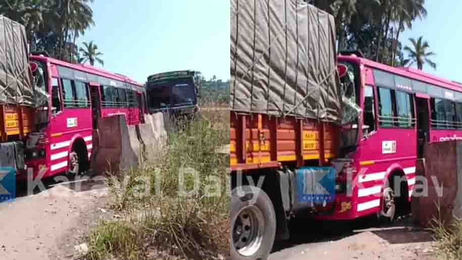 കാസര്കോട്: ദേശീയപാത തെക്കിലില് ലോറി ബസിന് പിറകിലിടിച്ച് അപകടം. നിരവധി യാത്രക്കാര്ക്ക് പരിക്കേറ്റു. വ്യാഴാഴ്ച ഉച്ചയ്ക്ക് രണ്ടുമണിയോടെ തെക്കില് ഇറക്കത്തിലാണ് അപകടം. കാസര്കോട്ടേക്ക് വരികയായിരുന്ന പ്രതാപ് ബസിന് പിറകില് ലോറിയിടിക്കുകയായിരുന്നു. നിയന്ത്രണം വിട്ട ബസ് പാഞ്ഞ് മുന്നിലുള്ള ലോറിയുടെ പിറകില് ഇടിച്ചു. അപകടത്തെ തുടര്ന്ന് രണ്ട് ലോറികള്ക്കിടയില്പെട്ട് ബസ് കുടുങ്ങിപ്പോയി. പരിക്കേറ്റ 20 ഓളം യാത്രക്കാരെ വിവിധ ആശുപത്രികളില് പ്രവേശിപ്പിച്ചു. ആരുടെയും പരിക്ക് ഗുരുതരമല്ലെന്നാണ് വിവരം. ബസിന്റെ മുന്ഭാഗം പാടെ തകര്ന്നു.