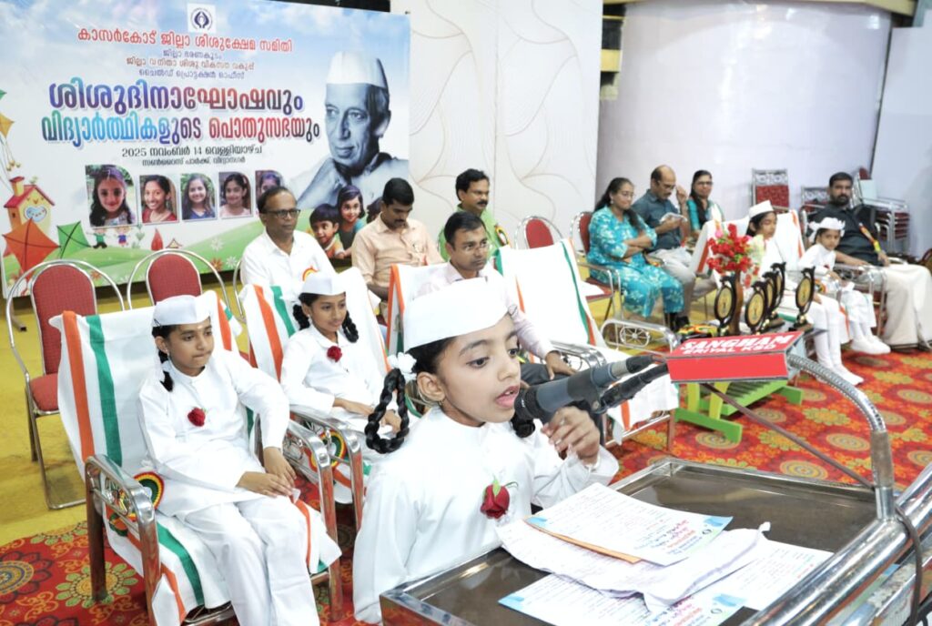 തുടര്ന്ന് നടന്ന വിദ്യാര്ത്ഥി പൊതുസഭ കുട്ടികളുടെ പ്രധാനമന്ത്രി ബി.എ. ഖദീജത്ത് ഹസ്വ ഉദ്ഘാടനം ചെയ്തു. കുട്ടികളുടെ പ്രസിഡന്റ് കെ.എസ്. പ്രണമ്യ അധ്യക്ഷത വഹിച്ചു. കുട്ടികളുടെ പ്രതിപക്ഷ നേതാവ് പി. വേദ നായര് മുഖ്യപ്രഭാഷണം നടത്തി. ഡെപ്യൂട്ടി കളക്ടര് ലിപു എസ്. ലോറന്സ് ശിശുദിന സന്ദേശം നല്കി. സാമൂഹ്യപ്രവര്ത്തക മൃദുല ബായ് മണ്ണൂര് വിശിഷ്ടാതിഥിയായി. ജില്ലാ ശിശുക്ഷേമ സമിതി സെക്രട്ടറി ടി.എം.എ. കരീം, കാസര്കോട് എ.ഇ.ഒ. അഗസ്റ്റിന് ബെര്ണാഡ്, ജില്ലാ വനിതാ ശിശുവികസന ഓഫീസര് ടി. ഹഫ്സത്ത് എന്നിവര് സമ്മാനങ്ങള് വിതരണം ചെയ്ത് സംസാരിച്ചു.