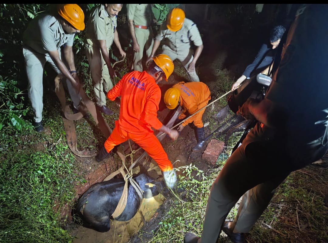 കാസർകോട്: മേയുന്നതിനിടെ മാലിന്യക്കുഴിയിൽ വീണ ഗർഭിണിയായ പശുവിനു രക്ഷകരായത് അഗ്നിരക്ഷാസേന. ബദിയടുക്ക ബേളയിലെ അബ്ദുൽ ഖാദറിന്റെ വീട്ടുപറമ്പിലെ ആറടി താഴ്ചയും ആറടി നീളവുമുഉള്ള മാലിന്യ കുഴിയിൽ ആണ് പശു വീണത്. ആളുകളുടെ കൺമുന്നിൽ വച്ചായിരുന്നു സംഭവം. തുടർന്ന് നാട്ടുകാരുടെ സഹായത്താൽ പശുവിനെ പുറത്തെത്തിക്കാൻ ശ്രമം നടത്തിയെങ്കിലും സാധിച്ചില്ല. ഇതോടെ കാസർകോട്ടെ അഗ്നിരക്ഷാസേനയുടെ സഹായം തേടുകയായിരുന്നു. അസിസ്റ്റൻറ് സ്റ്റേഷൻ ഓഫീസർ ആർ.വിനോദ് കുമാറിന്റെ നേതൃത്വത്തിൽ സേനാംഗങ്ങൾ ക്യാൻവാസ് ഹോസ്, കയർ എന്നിവ ഉപയോഗിച്ച് കെട്ടി കുഴിയിൽ നിന്നും പശുവിനെ കരയ്ക്ക് കയറ്റി. അതേസമയം പശുവിൻ്റെ ഉടമസ്ഥനാരാണെന്ന് അറിയാൻ കഴിഞ്ഞില്ല. എസ്.അരുൺ കുമാർ, ജെ. ബി. ജിജോ, വൈശാഖ് പാർത്ഥസാരഥി എം.എം. അരുൺകുമാർ, ജെ.അനന്ദു, ഫയർ വു മൺ, അരുണ പി നായർ ഹോംഗാർഡുമാരായ വി. രാജു, കെ. സുമേഷ് എന്നിരും നാട്ടുകാരും രക്ഷാപ്രവർത്തനത്തിൽ പങ്കാളികളായി.