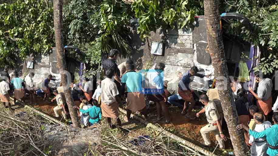 കാസര്കോട്: മലയോര ഹൈവേ കാറ്റാംകവല മറ്റപ്പള്ളി വളവില് അയ്യപ്പന്മാര് സഞ്ചരിച്ച ബസ് 30 താഴ്ചയിലേക്ക് മറിഞ്ഞു. ഏഴു അയ്യപ്പഭക്തര്ക്ക് പരിക്കേറ്റു. ശനിയാഴ്ച ഉച്ചയോടെയാണ് അപകടം. ശബരിമലയില് രപോയി മടങ്ങി ബംഗളൂരുവിലേക്ക് പോകുന്ന ബസാണ് അപകടത്തില്പെട്ടത്. വിവരത്തെ തുടര്ന്ന് നിരവധി ആംബുലന്സുകള് സ്ഥലത്തെത്തിച്ച് പരിക്കേറ്റവരെ വിവിധ ആശുപത്രികളിലെത്തിച്ചു. പരിക്കേറ്റവരുടെ നില ഗുരുതരമാണ്.