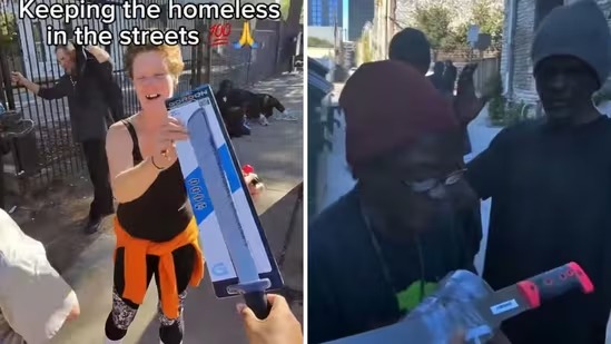വീടില്ലാത്തവര്ക്ക് ചെറിയ വിസ്കി കുപ്പികളോ പായ്ക്ക് ചെയ്ത വാക്കത്തികളോ അല്ലെങ്കില് രണ്ടും നല്കുന്നതായി അദ്ദേഹത്തിന്റെ വീഡിയോകളില് കാണാം. എല്ലാ വീഡിയോകളിലും ഒരേ വാചകം തന്നെയാണ് ഉള്ളത്്, ‘വീടില്ലാത്തവരെ തെരുവുകളില് നിര്ത്തുക’ എന്നാണ് അത്.
