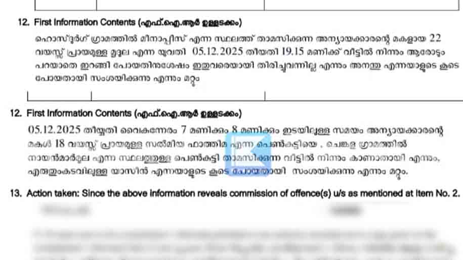 ഹൊസ്ദുര്ഗ്ഗ് പൊലീസ് സ്റ്റേഷന് പരിധിയിലെ മീനാപ്പീസ് ശ്രീനിലയത്തില് മൃദുല (22)യെ രാത്രി ഏഴേകാല് മണിയോടെയാണ് വീട്ടില് നിന്നു കാണാതായത്. അനന്തു എന്ന ആള്ക്കൊപ്പം പോയതായി സംശയിക്കുന്നതായി ഹൊസ്ദുര്ഗ്ഗ് പൊലീസ് രജിസ്റ്റര് ചെയ്ത കേസില് പറയുന്നു.