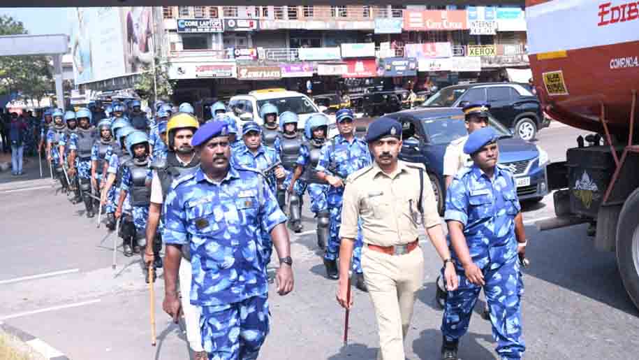 11ന് രാവിലെ എഴുമണി മുതല് വൈകുന്നേരം ഏഴുമണിവരെ നടക്കുന്ന പോളിംഗ് സമാധാനപരമാക്കുന്നതിനു വേണ്ടി എല്ലാവരും സഹകരിക്കണമെന്നും ജില്ലാ കളക്ടറും ജില്ലാ പൊലീസ് മേധാവിയും അഭ്യര്ത്ഥിച്ചു. സുരക്ഷാ ക്രമീകരണങ്ങളുടെ ഭാഗമായി ജില്ലയില് പൊലീസും ദ്രുതകര്മ്മസേനയും റൂട്ട് മാര്ച്ച് ആരംഭിച്ചു. തിങ്കളാഴ്ച നെല്ലിക്കുന്നിലും കറന്തക്കാട് മുതല് കാസര്കോട് പുതിയ ബസ്സ്റ്റാന്റുവരെയും റൂട്ട് മാര്ച്ച് നടത്തി. എ എസ് പി എം നന്ദഗോപന്, ദ്രുതകര്മ്മസേന ഇന്സ്പെക്ടര് ജെ ആല്ബര്ട്ട്, അസി. ഇന്സ്പെക്ടര്മാരായ ജപകുമാര്, കെ കെ ജയ നേതൃത്വം നല്കി. മറ്റു സ്ഥലങ്ങളില് ഉച്ച കഴിഞ്ഞും ചൊവ്വാഴ്ചയും റൂട്ട് മാര്ച്ച് നടത്തും.