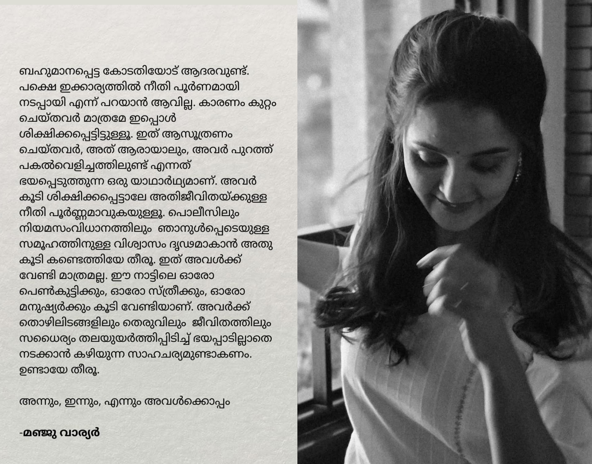 മഞ്ജു വാര്യരുടെ ഫേസ്ബുക്ക് പോസ്റ്റിന്റെ പൂർണരൂപം