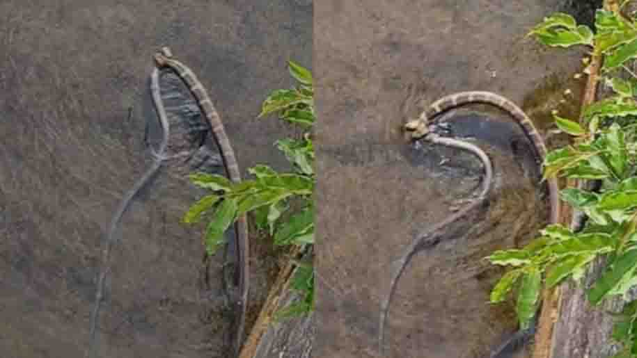 കൊച്ചി: പുഴയില് രാജവെമ്പാലകളുടെ പൊരിഞ്ഞ പോര്. കഴിഞ്ഞ ദിവസം വൈകിട്ട് കോതമംഗലം- ഇടമലയാര് പവര്ഹൗസിനു താഴെ നടന്ന പോര് കാണാന് നിരവധി പേരാണ് എത്തിയത്. ഇതിന്റെ ദൃശ്യങ്ങള് വൈറലാണ്. പുഴയില് വെള്ളം കുറവുള്ള സമയത്തായിരുന്നു രാജവെമ്പാലകളെ പരസ്പരം ആക്രമിക്കുന്ന നിലയില് കണ്ടത്. വലിയ രാജവെമ്പാല ചെറുതിനെ വിഴുങ്ങാനുള്ള ശ്രമമായിരുന്നു.
