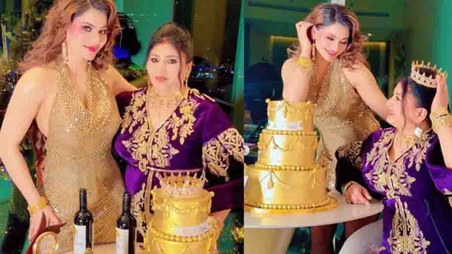 മൂന്ന് തട്ടുകളുള്ള സ്വര്ണ്ണ കേക്കാണ് ഒരുക്കിയത്. കേക്കിന് മുകളില് ‘ഹാപ്പി മം’ എന്നും എഴുതിയിരുന്നു. ‘പുറത്തുവന്ന ദൃശ്യങ്ങളില് അമ്മ കസേരയില് ഇരിക്കുന്നതും നടി കേക്കില് നിന്നും ഒരു സ്വര്ണ്ണ കിരീടം എടുത്ത് അമ്മയുടെ തലയില് വയ്ക്കുന്നതും കാണാം.