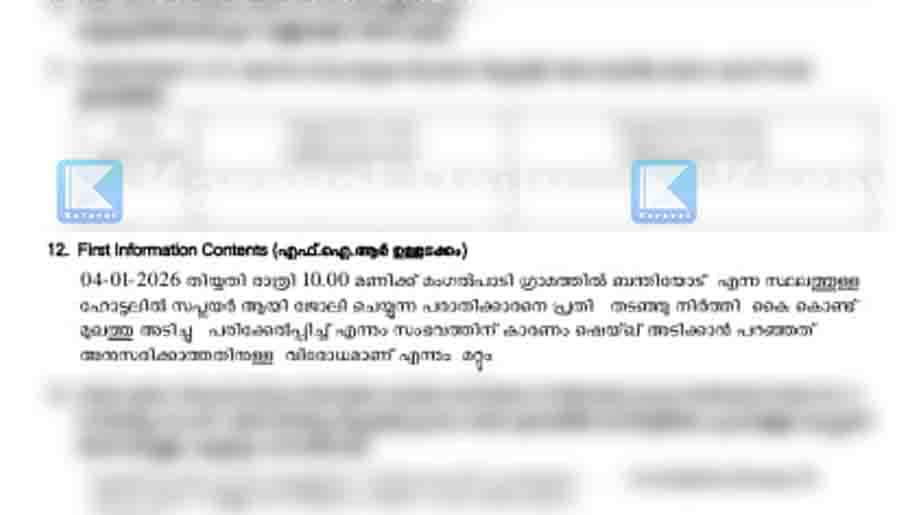 തിങ്കളാഴ്ച രാത്രി 10 മണിയോടെ ഹോട്ടലില് ആണ് സംഭവം. ഹോട്ടലില് ഭക്ഷണം കഴിക്കാന് എത്തിയതായിരുന്നു പരാതിക്കാരനായ അബൂബക്കര്. ജ്യൂസ് ആവശ്യപ്പെട്ടപ്പോള് നല്കാന് തയ്യാറാകാത്ത വിരോധത്തില് സപ്ലൈറായ മുഹമ്മദ് മാസിറിന്റെ മുഖത്ത് അടിച്ചു പരിക്കേല്പ്പിച്ചുവെന്നാണ് പരാതി. കുമ്പള പൊലീസ് കേസ് രജിസ്റ്റര് ചെയ്തു.