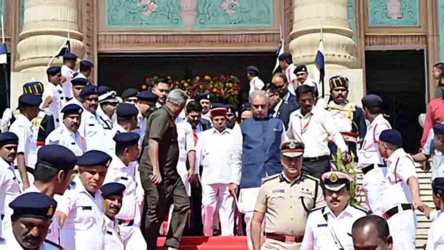 ബംഗളൂരു:കർണാടക ഗവർണർ തവാർചന്ദ് ഗെലോട്ട് വ്യാഴാഴ്ച നിയമസഭയുടെ സംയുക്ത സമ്മേളനത്തെ മൂന്ന് വാക്യങ്ങളിൽ അഭിസംബോധന ചെയ്ത ശേഷം നയ പ്രസംഗം വായിക്കാതെ നിയമസഭയിൽ നിന്ന് ഇറങ്ങിപ്പോയി.”നിയമസഭയുടെ സംയുക്ത സമ്മേളനത്തിലേക്ക് നിങ്ങളെ എല്ലാവരെയും സ്വാഗതം ചെയ്യുന്നു. കർണാടക നിയമസഭയുടെ മറ്റൊരു സംയുക്ത സമ്മേളനത്തെ അഭിസംബോധന ചെയ്യാൻ കഴിഞ്ഞതിൽ എനിക്ക് സന്തോഷമുണ്ട്.