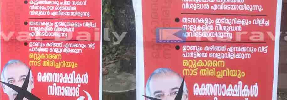പയ്യന്നൂര്: പയ്യന്നൂരിലെ സിപിഎം എംഎല്എ ടിഐ മധുസൂദനനെതിരെ ഗുരുതര ആരോപണങ്ങള് ഉന്നയിച്ച ജില്ലാ കമ്മിറ്റി അംഗം വി കുഞ്ഞികൃഷ്ണനെതിരെ പയ്യന്നൂരിലും പരിസരങ്ങളിലും വ്യാപക പോസ്റ്ററുകളും ബോര്ഡുകളും.” കഴുത്തിനു നേരെ വടിവാള് വരുന്ന നാളുകളില് വിശുദ്ധന് എവിടെയായിരുന്നു? കൂട്ടത്തിലൊരു പ്രിയ സഖാവ് വീണു പോയ രാത്രിയില് വിശുദ്ധന് എവിടെയായിരുന്നു? തടവറകളും ഇടി മുറികളും വിളിച്ച നാളുകളില് വിശുദ്ധന് എവിടെയായിരുന്നു?, ഊണും കഴിഞ്ഞ് ഏമ്പക്കവും വിട്ട് പാര്ട്ടിയെ വെല്ലുവിളിക്കുന്ന ഒറ്റുകാരനെ നാട് തിരിച്ചറിയും, രക്തസാക്ഷികള് സിന്ദാബാദ് ” എന്നാണ് കുഞ്ഞികൃഷ്ണന്റെ …