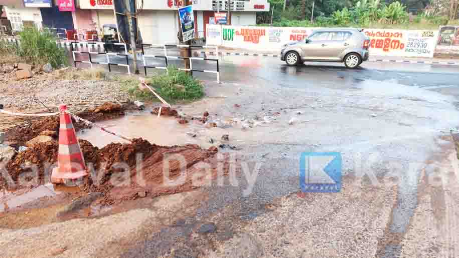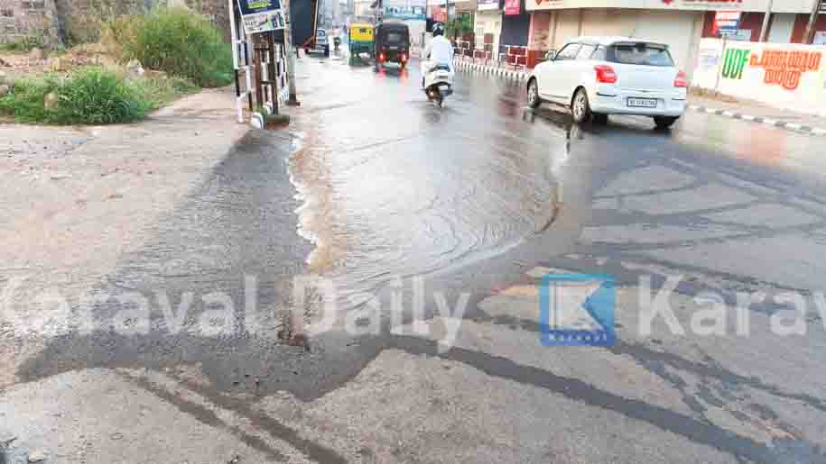 ചന്ദ്രഗിരിപ്പുഴയിലെ ബാവിക്കരയില് നിന്നു അതി ശക്തമായ പമ്പുകളുപയോഗിച്ചു പമ്പു ചെയ്തു വിദ്യാനഗറിലെ ശുദ്ധീകരണ ശാലയിലെത്തിച്ചു ശുദ്ധീകരിച്ചു തുറന്നു വിടുന്ന വെള്ളമാണ് പൈപ്പ് പൊട്ടി റോഡിലൊഴുകുന്നത്. കാസര്കോട് ടൗണിലെ ഫോര്ട്ട് റോഡില് നിന്നു തായലങ്ങാടി റോഡിലിറങ്ങുന്ന ജംഗ്ഷനടുത്ത് പൈപ്പ് പൊട്ടിയ സ്ഥലത്തു കുടിവെള്ളം തടസ്സിമില്ലാതെ ഒഴുകിപ്പോവുന്നതിന് അധികൃതര് മണ്ണു തെളിച്ചു വച്ചിട്ടുണ്ട്. അതിനടുത്തു തന്നെ ഒരു അപകട പ്ലാസ്റ്റിക് കുറ്റിയും വച്ചു. ഉപഭോക്താക്കള്ക്കുവേണ്ടി വെള്ളം തുറന്നു വിടുമ്പോള് ഇതുവഴി അതു അപ്പാടെ ഒഴുകിപ്പോവുകയാണ്.