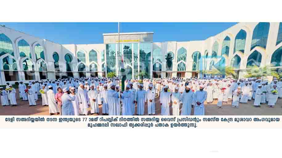 കാസർകോട് : സഅദിയ്യ ഇന്ത്യയുടെ 77 മത് റിപബ്ലിക് ദിനാം വിപുലമായി ആഘോഷിച്ചു വൈസ് പ്രസിഡന്റും സമസ്ത കേന്ദ്ര മുശാവറ അംഗവുമായ മുഹമ്മദലി സഖാഫി തൃക്കരിപ്പൂര് പതാക ഉയര്ത്തി.