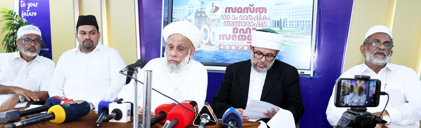 സമസ്ത പ്രസിഡന്റ് സയ്യിദ് ജിഫ്രി മുത്തുക്കോയ തങ്ങള്, സ്വാഗതസംഘം വൈസ് ചെയര്മാന് സയ്യിദ് മുഹമ്മദ് കോയ തങ്ങള് ജമലുലൈലി, പാണക്കാട് സയ്യിദ് സാബിഖലി ശിഹാബ് തങ്ങള്, സമ്മേളന കോ ഓര്ഡിനേറ്റര് കെ. മോയിന്കുട്ടി , കാസര്കോട് ജിcല്ലാ സ്വാഗതസംഘം ട്രഷറര് കുണിയ ഇബ്രാഹിം ഹാജിസമസ്ത വാര്ത്താ സമ്മേളനത്തില്പരിപാടികൾ വിശദീകരിച്ചു.