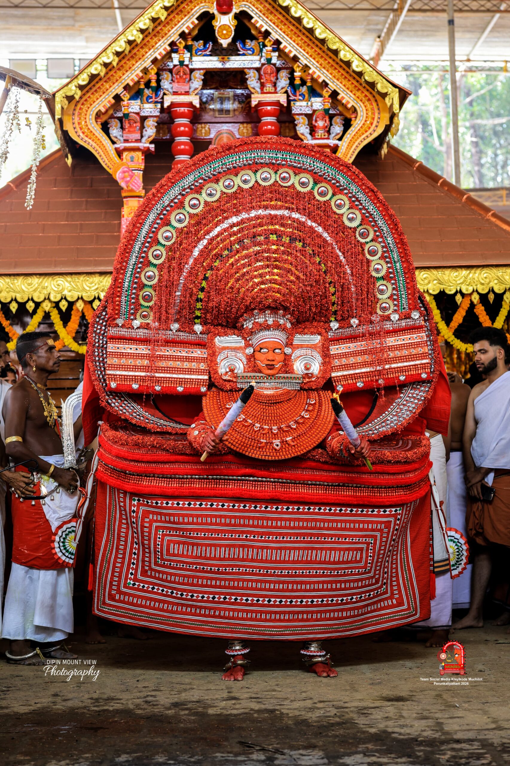 പൊയ്ക്കണ്ണണിഞ്ഞ് ദീപിതകോലുമേന്തി വിവിധ താളത്തിൽ ഒൻപത് തവണ ക്ഷേത്രം വലം വെച്ചു.തുടർന്ന് മണിക്കിണർ നോക്കി പൊയ്ക്കണ്ണഴിച്ചു.ശേഷം മണിക്കൂറുകളോളം ഭക്തർക്ക് ദർശനം നൽകി. നാടിന്റെ നാനാഭാഗത്ത് നിന്നും പതിനായിരങ്ങളാണ് സമാപന ദിവസം ക്ഷേത്രത്തിലേക്ക് ഒഴുകിയെത്തിയത്.ര രാവിലെ മുതൽ പുലിയൂർ കണ്ണൻ, തത്സ്വരൂപനും കൈക്കോളനും,ഏരോത്ത് ചാമുണ്ഡി,നരമ്പിൽ ഭഗവതി, ചെക്കിപ്പാറ ഭഗവതി,കണ്ണങ്ങാട്ട് ഭഗവതി, രക്തചാമുണ്ഡി,പുലിയൂർ കാളി,കുറത്തി, കുണ്ടോറ ചാമുണ്ഡി,വിഷ്ണുമൂർത്തി എന്നീ തെയ്യങ്ങൾ അരങ്ങിലെത്തി.