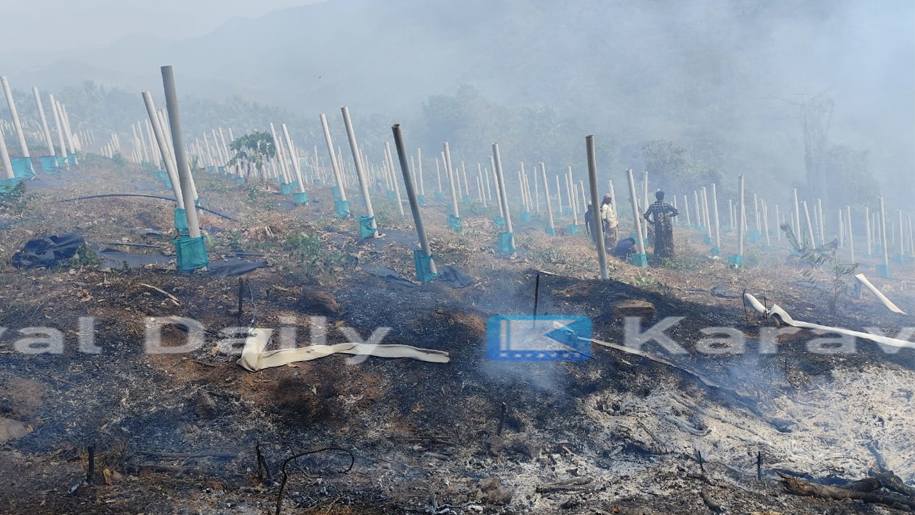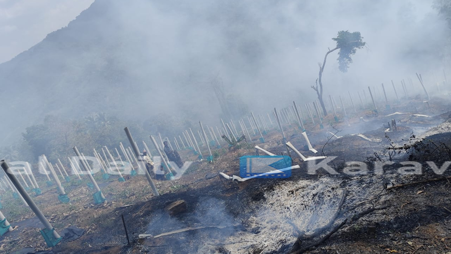 വെള്ളിയാഴ്ച ഉച്ചയോടെ പാറച്ചാല് ചിലമ്പിക്കുന്നേല് അപ്പച്ചന് എന്നയാളുടെ പറമ്പിലാണ് ആദ്യ തീപിടുത്തം ഉണ്ടായതെന്നു സംശയിക്കുന്നു. അവിടെ നിന്നു സമീപത്തെ കുരുമുളക് തോട്ടത്തിലേയ്ക്ക് പടര്ന്നു. ആധുനിക രീതിയില് തയ്യാറാക്കിയ കുരുമുളക് തോട്ടത്തിലേയ്ക്കാണ് തീ പടര്ന്നത്. അന്പതിലേറെ പി വി സി പൈപ്പുകള് കത്തി നശിച്ചു. കണ്ണൂര്, മട്ടന്നൂര് സ്വദേശികളുടെ ഉടമസ്ഥതയിലുള്ളതാണ് ഈ തോട്ടം.
