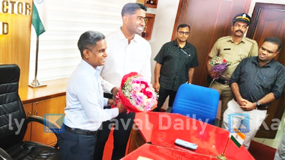എ ഡി എം ഉള്പ്പെടെയുള്ള ഉദ്യോഗസ്ഥരും സിവില് സ്റ്റേഷനിലെ ജീവനക്കാരും കളക്ട്രേറ്റിലെത്തിയ അദ്ദേഹത്തെ സ്വീകരിച്ചു. സ്ഥാനമൊഴിഞ്ഞ ജില്ലാ കളക്ടര് കെ ഇമ്പശേഖരന് പുഷ്പഹാരം നല്കിയ ജില്ലാ കളക്ടര് അര്ജുന് പാണ്ഡ്യനെ സ്വീകരിച്ചു.
