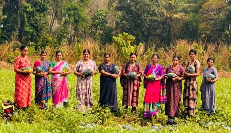 ബദിയഡുക്ക: ബേളയിലെ ആതിര, മല്ലിക എന്നീ ജെ.എല്. ജി ഗ്രൂപ്പുകളുടെ കൂട്ടായ്മയിൽ നടത്തിയ തണ്ണിമത്തൻ കൃഷിയുടെ വിളവെടുപ്പ് ഉത്സവ🙏 പ്രതീതിയിൽ നാട് ആഘോഷിച്ചു. ഏണിയര്പ്പ് പാടശേഖരത്തിലെ തരിശ്ശ് ഭൂമിയിലാണ് വിളവെടുപ്പ് നടത്തിയത്. ആതിരയും മല്ലികയും ഒത്തൊരുമിച്ച് നടത്തിയ തണ്ണി മത്തന് കൃഷി മറ്റു കുടുംബശ്രീ അയല്ക്കൂട്ടങ്ങള്ക്ക് മാതൃകയാവട്ടെയെന്നും കൃഷിയില് നിന്നും ഇന്നത്തെ യുവ തലമുറ പിന്തിരിയുമ്പോള് അവര്ക്ക് ഇത്തരം പ്രവൃത്തികള് വഴിക്കാട്ടിയാവട്ടെയെന്ന് വിളവെടുപ്പ് ഉദ്ഘാടനം ചെയ്ത പഞ്ചായത്ത് അംഗം അശ്വതി പറഞ്ഞു. നൂറ് മേനി വിളവെടുത്ത് മറ്റു കുടുംബശ്രീ യൂണിറ്റുകള്ക്ക് മാത്യകയാവുകയാണ് രണ്ട് കുടുംബശ്രി ജെ.എല്.ജി ഗ്രൂപ്പുകളായ ആതിരയും മല്ലികയും . മുന് കുടുംബശ്രി സി ഡി എസ് വൈസ് ചെയര്പഴ്സണ് പ്രേമ ഗണേഷ് , സി ഡി എസ് അംഗം സാവിത്രി, അഗ്രിക്കല്ച്ചര് സി ആര് പി മിനിത പ്രസംഗിച്ചു. വിളവെടുപ്പ് ദിവസം 27 ക്വിന്റല് തണ്ണി മത്തന് വിറ്റഴിച്ചു.