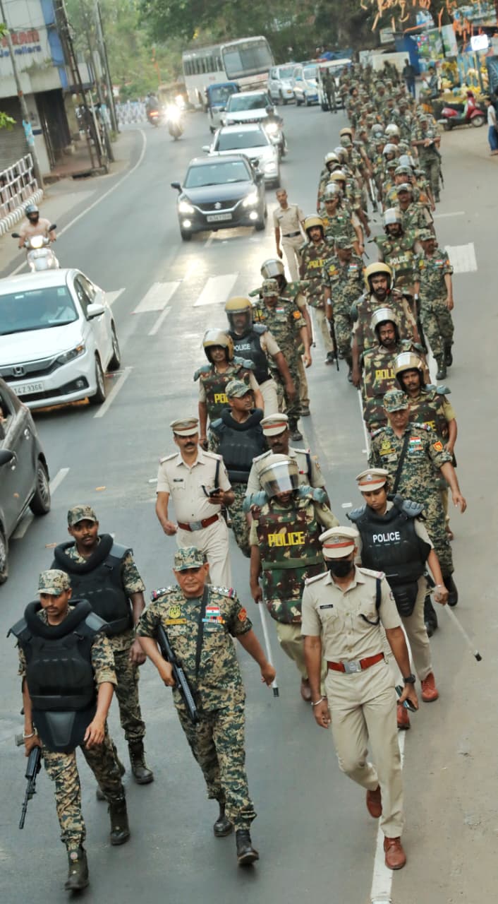 കാസർകോട്: നിയമസഭ തിരഞ്ഞെടുപ്പിനു മുന്നോടിയായി കാസർകോട് പോലീസ് സ്റ്റേഷൻ പരിധിയിൽ കേന്ദ്രസേനയും കേരള പോലീസും റൂട്ട് മാച്ച് നടത്തി. കേന്ദ്രസേനനായ ബിഎസ്എഫും കേരള പോലീസും ഉൾപ്പെടുന്ന 100 വോളം സേനാംഗങ്ങൾ റൂട്ട് മാർച്ചിൽ പങ്കെടുത്തു.