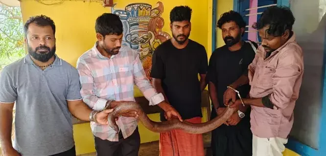 കാൽകോടിക്ക് കച്ചവടം ഉറപ്പിച്ചു, ആന്ധ്രയിൽ നിന്ന് ഇരുതലമൂരിയെ പയ്യന്നൂരിൽ എത്തിച്ചു; മട്ടലായി സ്വദേശി അടക്കം അഞ്ചുപേർ വനം വകുപ്പിന്റെ പിടിയിലായി