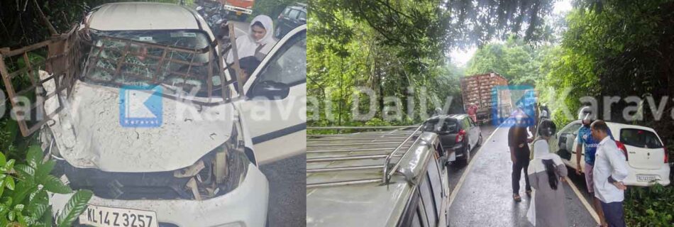 മുളിയാര് പാലത്തിനു സമീപത്ത് കോഴി ലോറിയിടിച്ച് കാര് തകര്ന്നു; ഒഴിവായത് വന് ദുരന്തം