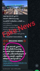 കാരവൽ വാർത്തയിൽ നുഴഞ്ഞുകയറി എഡിറ്റ് ചെയ്ത് വാസ്തവ വിരുദ്ധമായ കാര്യങ്ങൾ പ്രചരിപ്പിച്ചു; കുറ്റക്കാർക്കെതിരെ കർശന നിയമനടപടി Friday, 16 January 2026, 20:24
