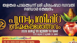 തളങ്കര പാലക്കുന്ന് ശ്രീ ചീരുംബാ ഭഗവതി ഭണ്ഡാരക്ഷേത്ര പുനഃപ്രതിഷ്ഠാ ബ്രഹ്മ കലശോത്സവത്തിന് അഞ്ചിനു തുടക്കം; ഒരുക്കങ്ങള് പൂര്ത്തിയായി Tuesday, 3 March 2026, 15:05