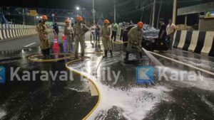 സ്കൂട്ടറുമായി കൂട്ടിയിടിച്ച കാറിന്റെ ടാങ്ക് തകര്ന്ന് ഡീസല് റോഡില് പരന്നൊഴുകി ഗതാഗതം തടസ്സപ്പെട്ടു; ഫയര്ഫോഴ്സ് എത്തി റോഡ് കഴുകി വൃത്തിയാക്കി Tuesday, 4 November 2025, 11:40
