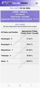 കാസർകോട് ജില്ലയിൽ ഏറ്റവും കൂടുതൽ പോളിംഗ് മഞ്ചേശ്വരത്ത്; കുറവ് കാഞ്ഞങ്ങാട് Friday, 10 April 2026, 6:29